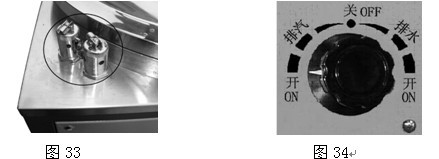 有的物品滅菌后需要迅速干燥,須打開安全閥(圖33)或?qū)⑴牌潘傞y向左旋轉(zhuǎn)**“開”位置(圖34),讓滅菌器內(nèi)的蒸汽迅速排出,使物品上殘留水蒸汽快速揮發(fā)。滅菌液體時嚴禁使用干燥方法。