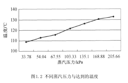 滅菌器中不同蒸汽壓力和溫度關系曲線見圖1.2[6]