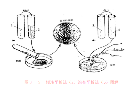 1.菌懸液 2.熔化的培育基 3.培育物 4.無菌水