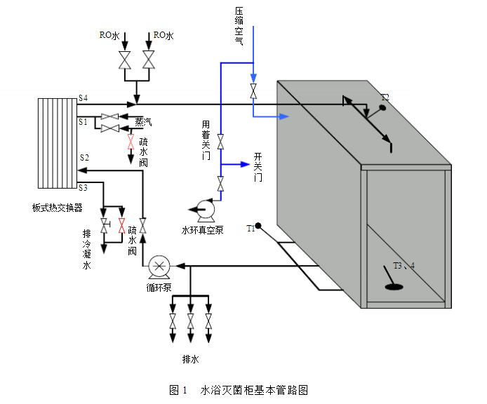 滅菌柜的根本管路如圖1所示,其作業進程為: