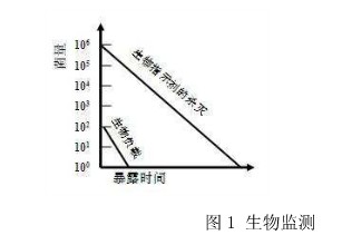 要尋找適合的滅菌監控手段,shou先需了解影響滅菌效果的主要因素。在滅菌環境相同的情況下,產品上負載的微生物的抗力和數量,是影響滅菌效率的關鍵因素。通常,由于對于原材料的來源和微生物的數量有嚴格要求,加上對于儲存和生產車間的潔凈要求(不同產品有不同要求),在滅菌前所攜帶的微生物的數量是有限的。生物監測使用所攜帶微生物的數量和抗力都遠大于實際生物負載的生物指示劑,與生物負載處于相同或更難滅菌的環境中(如將生物指示劑放置于過程挑戰設備{Process Challenge Device}中) 同時進行滅菌,然后觀察生物指示劑中微生物的殺滅情況,來判斷整個負載的有效性。圖1解釋了生物指示劑監控整個負載并可靠反映其效果的原理:當生物指示劑被殺滅的時候,生物負載早已被殺滅了。